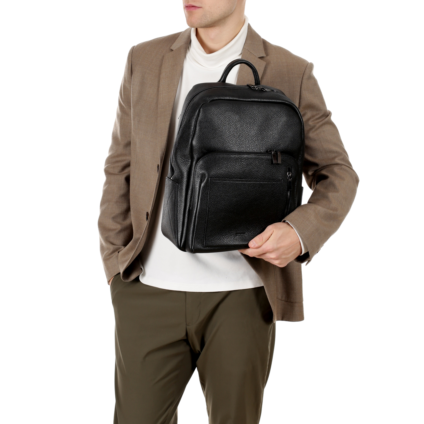 Кожаный мужской рюкзак на двойной молнии